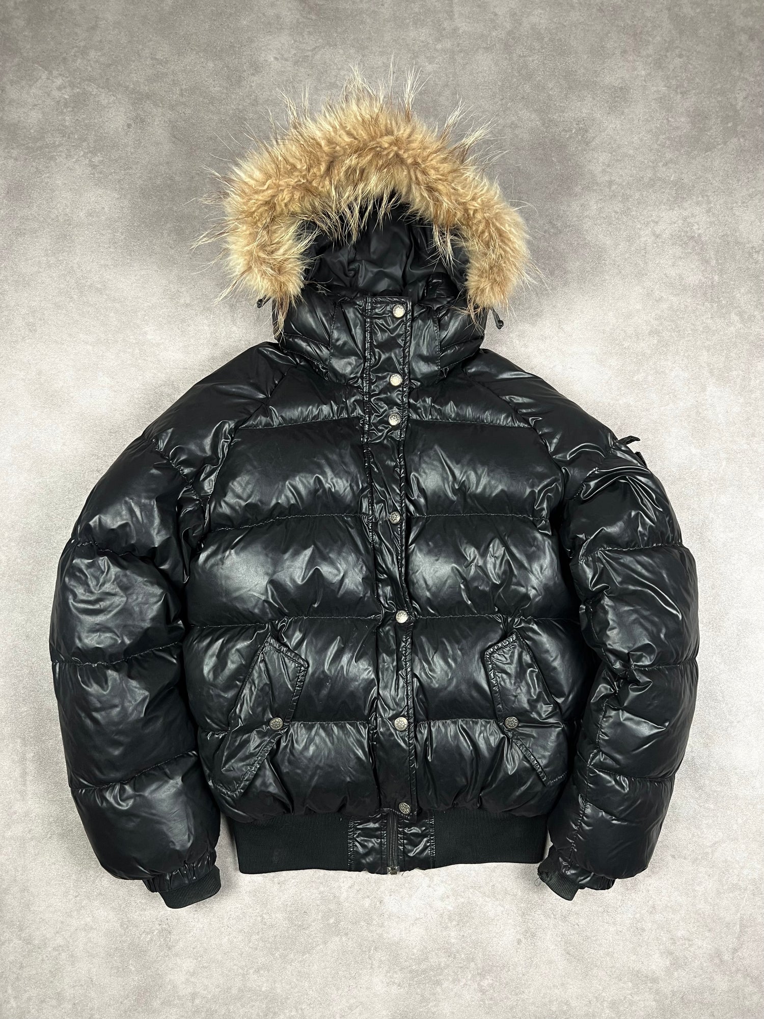 🟣 Good Condition : The down jacket is in good condition, has some visible defects and shows slight signs of wear.